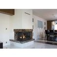 В широкую распашную дверцу, а также в стенку слева вставлены стёкла из жаропрочной стеклокерамики Robax®, через которые можно любоваться игрой живого пламени и следить за сгоранием дров. Каминная топка предназначена для установки в колонну, во внешний выступ перегородки или на специальный подиум.